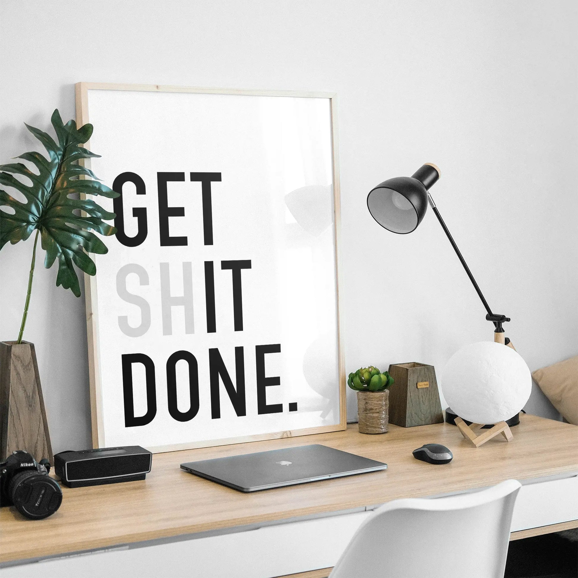 Clean black typography on a white backdrop makes this piece both playful and powerful, the perfect edge for your workspace.