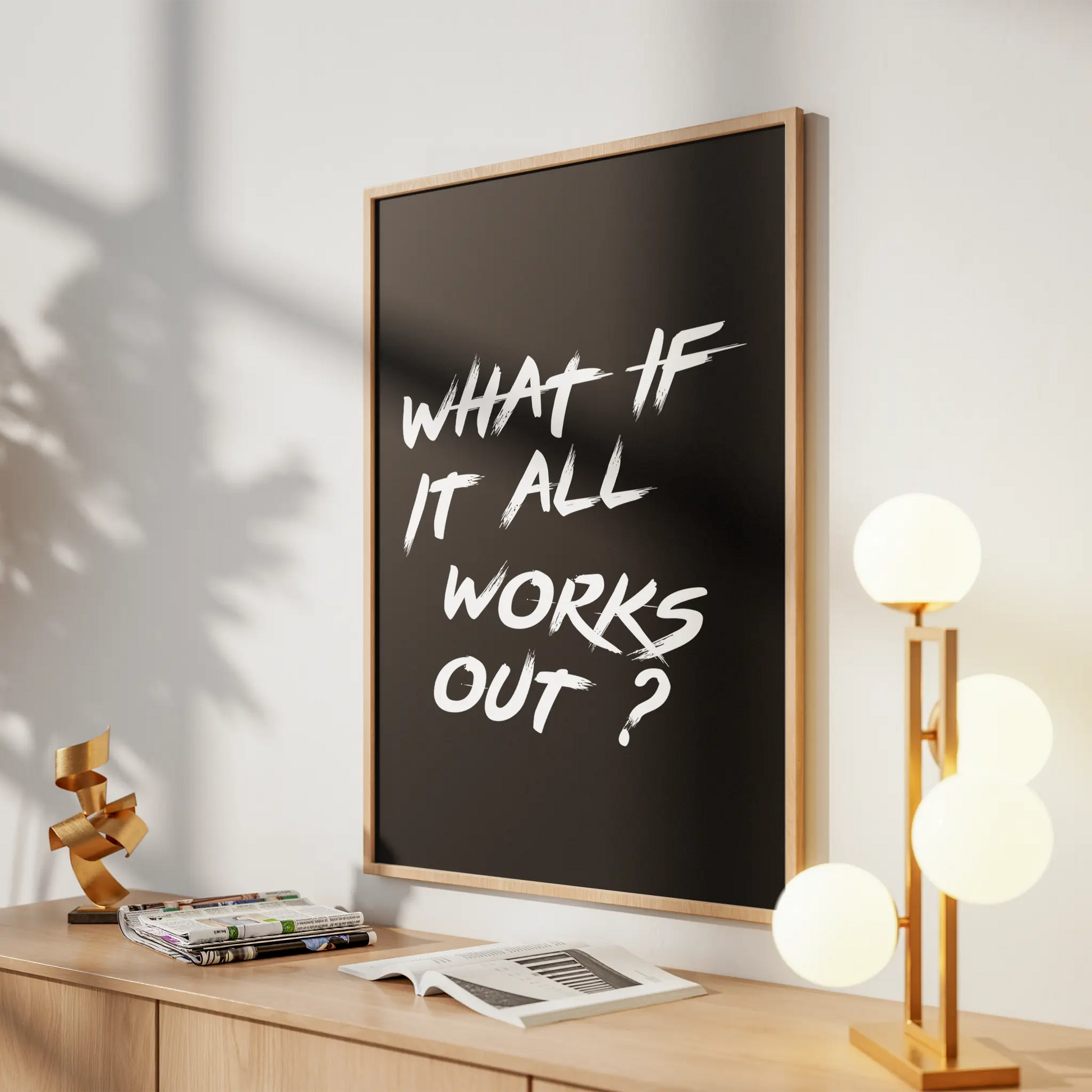 "What If It All Works Out ?" Minimalist Motivational Poster - Black & White
